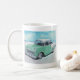 AQUA, CHEVY, AZUL, CARRO VINTAGE, AUTOMÓVEL RETRO, PINTURA A ÓLEO, CUBA, HAVANA, ARTE POR JUANMA, MOTOR, VEÍCULO, 1957 CHEVY
