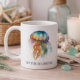 Leve seu café para fora com esta caneca de viagem embrulhada no Rainbow Tides Jellyfish: Watercolor Art design. Adicione o seu nome, as iniciais ou uma frase elevatória como "Sip the Sea Breeze" ou "Fuel for Adventures" para um companheiro de viagem artístico prático e artístico.