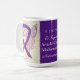 Arnold-Chiari Malformation usa uma fita de conscientização roxa para mostrar apoio para sua consciência. Esta caneca personalizada apresenta pinturas de arte de anjo da fita de reconhecimento roxa com a mensagem "Eu espero e apoio a Consciência da Malformação Arnold-Chiari!" O personalizado anjo roxo, guardião de reconhecimento, imagem de fita magnética, copos ou canecas de café podem ser personalizados com mensagens personalizadas para fazer canecas de excelente para arrecadação de fundos de conscientização, presentes de copos de consciência ou outros eventos especiais ou causar ocasiões de apoio. Faça suas próprias palavras personalizadas para uma mensagem pessoal de esperança e apoio para compartilhar!