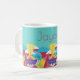 Inspirada pela design Art Deco, esta caneca tem um padrão grande de amnésia ao longo do fundo com raios abstrato, ondas, círculos e nuvens em tons brilhantes de amarelo, vermelho, rosa e azul. Você pode personalizá-lo com seu nome. O trabalho de arte é um padrão original, único, desenhado à mão.