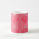 Esta caneca tem um design de diamantes de arte em prata num campo de rosa.