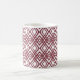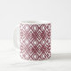 Esta caneca tem um design de arte de sobrepor diamantes em sangria num campo de branco.