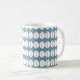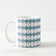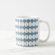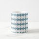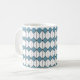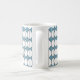 Esta caneca tem um design de deco de arte de hexágonos brancos com uma linha preta no meio e os diamantes azuis.