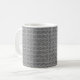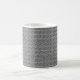 Esta caneca tem um design de Arte Deco feito de um ângulo reto com um dentro de labirinto preto num campo de cinzas.