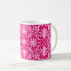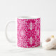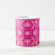 Art Nouveau, caneca de café com padrão têxtil, baseada num design de cerâmica de William Morris chinoiserie, fundida digitalmente e colorida para um efeito macio e aquoso - rosa e branco sobre fundo cor-de-rosa fuchsia profundo