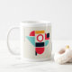 Celebre a beleza da simplicidade com este gráfico de pássaros do estilo Bauhaus! Projetada com formas angulares e cores marcantes, esta trabalho de arte transforma a sua caneca em um pedaço de design moderno.