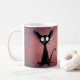Arte oriental engraçada bonito do gato preto em um fundo cor-de-rosa e roxo do vintage nesta caneca de café bonito do gato por Paul Stickland. Ideias pequenas mais engraçadas do presente do gato preto das cargas para amantes do gato em StrangeStore.