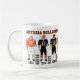 Artesia Bulldogs Football State Championship Uniforms Mug. Features some of the uniforms worn by the 33 time State Champion Bulldog football team, also includes all 33 championship years. Orange, black and white design. Looks best on white mugs.