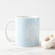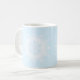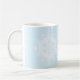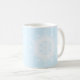 Esta mandala branca senta-se sobre um fundo azul claro. As cores são muito calmantes e pacíficas. Parte da Coleção Fenten Mandala.