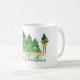 Celebrar a temporada com esta caneca festiva de café com aquarela árvores de Natal decoradas com luzes e ornamentos. Uma charmosa lanterna e alegre saudação de "Feliz Natal", traz calor ao seu cacau, chá ou café matinal. Um presente de Natal aconchegante para qualquer um que ama o clássico charme de Natal num estilo paixão.