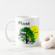 Ajude a salvar o ambiente com esta Planta uma caneca de árvore que tem uma árvore verde e sol amarelo contra um fundo branco.