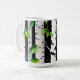Linda caneca de café mostra uma aquarela digital de uma gruta de árvores brancas.