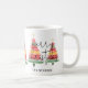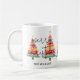 Lindas árvores de natal de aquarela com sotaque de estrela dourada nesta caneca com a letra chic Feliz Natal junto com o seu nome familiar. Excelente para você ou dar como presente. CORRESPONDENTE a itens na nossa coleção.
