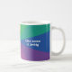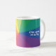 One side of the mug says As happy as a shoe and the other side says Cho sona ri bròig (Scottish Gaelic) with rainbow background.