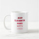 Mug apresentando os nomes das irmãs Bennet em diferentes tons de rosa do Orgulho e Preconceito por Jane Austen: Jane, Elizabeth, Mary, Gatinho e Lydia. É a caneca perfeita para amantes de livros e fãs de Jane Austen. © Bookish e Maravilha