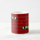 A caneca engraçada mostra uma parede de tijolos com pares de olhos sinistros espreitando através de buracos.