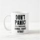 Esta deliciosa caneca branca apresenta a frase "Não entre em pânico! Sou uma ativista dos direitos dos animais. É perfeito para defensores de animais que querem mostrar sua paixão enquanto desfrutam de sua bebida favorita no escritório ou durante reuniões de equipes. Uma ideia de presente de excelente para aniversários ou promoções, esta caneca de trabalho adiciona um toque de humor a qualquer discussão sobre direitos dos animais.