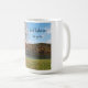 Uma caneca com uma foto de um rio Tennessee no outono com a frase 'Deus acredita em você'