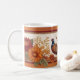 Este espantoso design de outono apresenta dois faisões elegantes cercados por flores vibrantes em tons quentes de laranja e vermelho. Os sotaques ouros nas folhas somam um toque de luxo e sofisticação. Perfeito por trazer uma atmosfera acolhedora e natural à sua rotina diária, esta caneca é ideal para amantes da natureza e para aqueles que apreciam a beleza da estação do outono.