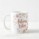 Celebrar a aconchegante época de outono com esta caneca de café Vibes do outono. Apresentando elegante texto caligrafia manuscrito "Autumn Vibes" em tons laranja quente e marrom rústicos, rodeados por abóboras aquáticas, folhas em queda, bolotas e sotaques de rabisco confortáveis. Os tons de pasta macia e o layout centralizado limpo o tornam perfeito para impressão em canecas, xícaras ou outros produtos sazonais. Design de alta resolução com fundo transparente, pronto para personalização e criações inspiradas em queda.