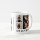 Caneca do Dia dos Pais com a frase "AVÔ, FELIZ DIA DOS PAIS, NÓS TE AMAMOS" e 6 fotos. Pode ser editada para felizes festas, feliz aniversário, feliz natal, tornando-se um presente perfeito para qualquer parente. A caneca é facilmente personalizada e os estilos, tamanhos e cores das fontes podem ser alterados clicando no link personalizar após a personalização.