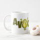 illustratie van twee avocado's met op de achtergrond het woord avocado.