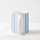 Explore nossa seleção de simples canecas modernas adornadas com listras verticais azuis clássicas em um pano de fundo branco. Adicione um pop de cor e nostalgia à sua cozinha com estas na moda e peças versáteis.