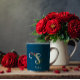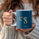 Caneca de café azul com iniciais e flores silvestres aquarela. Monograma em dois lados. Perfeito para presente. As iniciais personalizadas estão disponíveis mediante solicitação. Verifique nossa loja ou entre em contato conosco.