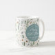 Folhagem mínima moderna, escrita azul empoeirada de Natal, design de caneca personalizada. A mão pintada de eucalipto, folhagem mínima e coroa rattan moderna rústica dão a esta design de feriado uma sensação luxuosa. Em azul, verde, preto, castanho e cinza.