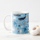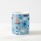 Design de tema oceânico e náutico inclui baleias, veleiros cor de laranja, polvo, caranguejos, cavalos do mar, rodas de navios, âncoras, faróis e muito mais sobre um fundo azul-claro bonito.