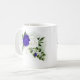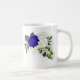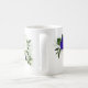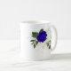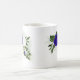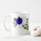 Linda caneca de café azul real e flores brancas com folhas verdes botânicas Os detalhes de brilho dourado são simulados