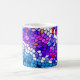 Esta caneca deslumbrante apresenta um lindo padrão de azulejo mosaico em tons de roxo, rosa, azul, turquesa e branco.