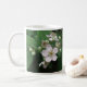 Esta linda caneca apresenta uma fotografia de uma videira de amora coberta de flores. Essas lindas flores parecem brancas de longe, mas se você olhar de perto, as pétalas têm uma coloração rosa pálida. O design é mostrado numa caneca branca básica, mas também está disponível numa série de outros estilos e cores de canecas.