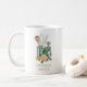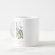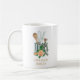 Modern watercolor frame peach floral and plaid baker, bakery, pastry chef bakery mug in pretty watercolors with baking utensils and a plaid ribbon: frosting spreader knife, whisk and wooden spoon. Pink, green, burnt sienna and black and white plaid. For a home baker, dessert caterer, pastry chef or bakery. The title font is a rustic antique typeface from the 1700's still admired and in use today; an earthy and textured style font.