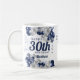 Uma linda caneca de aniversário de 30 feliz e balão prateado (ou qualquer idade). Esta design fabulosa é a maneira perfeita de desejar a alguém um feliz 30 anos (ou mudar a idade!) Personalize com nosso próprio nome e mensagem personalizados. Tipografia azul e belos balões azuis e prateados marinhos.