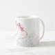Uma caneca de cerâmica branca alegre e romântica com um design 'LOVE' ousado e divertido com dois balões vermelhos flutuantes em forma de coração e confetes coloridos espalhados ao redor. O design ampliado torna esta caneca vibrante, atraente e cheia de amor.