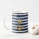 Caneca De Café Bandas Azuis e Âncora Dourada Náutica