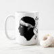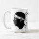 A bandeira da Córsega retrata a cabeça de uma Moor a preto, vestindo uma bandana branca sobre os olhos, sobre um fundo branco. A bandeira da Córsega é um símbolo de liberdade.