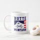 Bandeira de Butte, Montana. Criada em 1864 como um campo de mineração nas Montanhas Rochosas do norte na Divisão Continental, Butte experimentou um rápido desenvolvimento no final do século 19, e foi a primeira grande cidade industrial de Montana. No seu apogeu entre o final do século XIX e o início do 20, era uma das maiores cidades de expansão de cobre do Ocidente Americano.