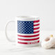 Mostre seu espírito patriótico com nossa caneca de café personalizada. Feita de cerâmica de alta qualidade, essa caneca apresenta um impressão vibrante e durável da bandeira americana, com a opção de adicionar um toque personalizado como nome ou mensagem. Quer você esteja gostando do café da manhã ou tomando chá, esta caneca é a maneira perfeita de celebrar seu amor pelos EUA. Excelente como presente ou para uso próprio.