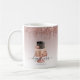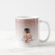 Esta elegante caneca de café da padaria apresenta uma ilustração de um bolo de ornamentado de ouro e de chocolate escuro em um fundo rosa de ombre dourado, com uma borda superior de rosa dourado escorrendo. Personalize-o com o seu nome comercial em um script de escrita manual preto com alternâncias no início e no fim, e o seu nome na fonte de sans preto. (Para guardar as hastes, substitua apenas as letras nesses campos de texto, deixando os símbolos no lugar.) O design aparece em ambos os lados da caneca.