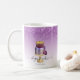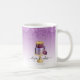 Esta elegante caneca de café da padaria apresenta uma ilustração de um bolo de casamento roxo e dourado em um fundo ombre roxo, com uma borda superior de cintilação falsa roxa. Personalize-o com o seu nome comercial em um script de escrita manual preto com alternâncias no início e no fim, e o seu nome na fonte de sans preto. (Para guardar as hastes, substitua apenas as letras nesses campos de texto, deixando os símbolos no lugar.) O design aparece em ambos os lados da caneca.