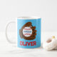 Um garoto personalizado e divertido beisebol e uma caneca mit. Apresentando uma luva marrom com um beisebol vermelho e branco (adicione o nome e a posição do seu filho). Tipografia desportiva. Faz um presente excelente! Você pode alterar as cores/estilos de fonte.