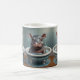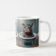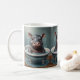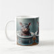Um filhote adorável sentado numa banheira, com gotas de água e bolhas à sua volta. Os animais e os animais de estimação olham para o espectador com olhos largos e inocentes, e suas pequenas patas estão na borda da banheira. A atmosfera é bonitinha e humorística, fazer ideal para um conjunto de poster.