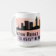 A caneca de café apresenta uma silhueta de linha do horizonte de Baton Rouge Louisiana com coordenadas de mapa e um fundo de salpicos de aquarela.