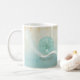 Este design de caneca de café nas cores suaves do mar e da areia permite adicionar facilmente o seu próprio nome e texto utilizando o modelo fornecido. A simples imagem da concha de moluscos em um fundo angustiado e aquoso é realçada por um sotaque de onda em aqua e branco. Procure ID623 para ver a coordenação de elementos à beira-mar e produtos adicionais com este design.