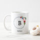 Celebrate your identity with a touch of botanical sophistication. This chic and minimalist mug features a crisp, modern typography design where your chosen letter stands at the heart of a delicate, circular frame. Adorned with a cluster of pretty garden flowers in vibrant red, blue and soft pink tones, the design strikes a perfect balance between a simple aesthetic and feminine grace. It is a stylish statement piece that brings a refined, garden-inspired vibe to your home or office desk.