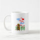 Uma caneca de café com minha design de um personagem de castor está segurando um cartaz que diz "Eu coração Alberta".