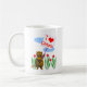 Uma caneca de café com a minha design de um personagem de castor com flores atrás dele, segurando uma placa que diz "Eu coração Ontário".