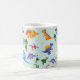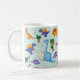 Esta design apresenta um padrão de vários dinossauros coloridos giros em um fundo azul macio. #dinossauro #dino #baby #baby #babygifs #bonitinho #café #mugs #cozinha #casa